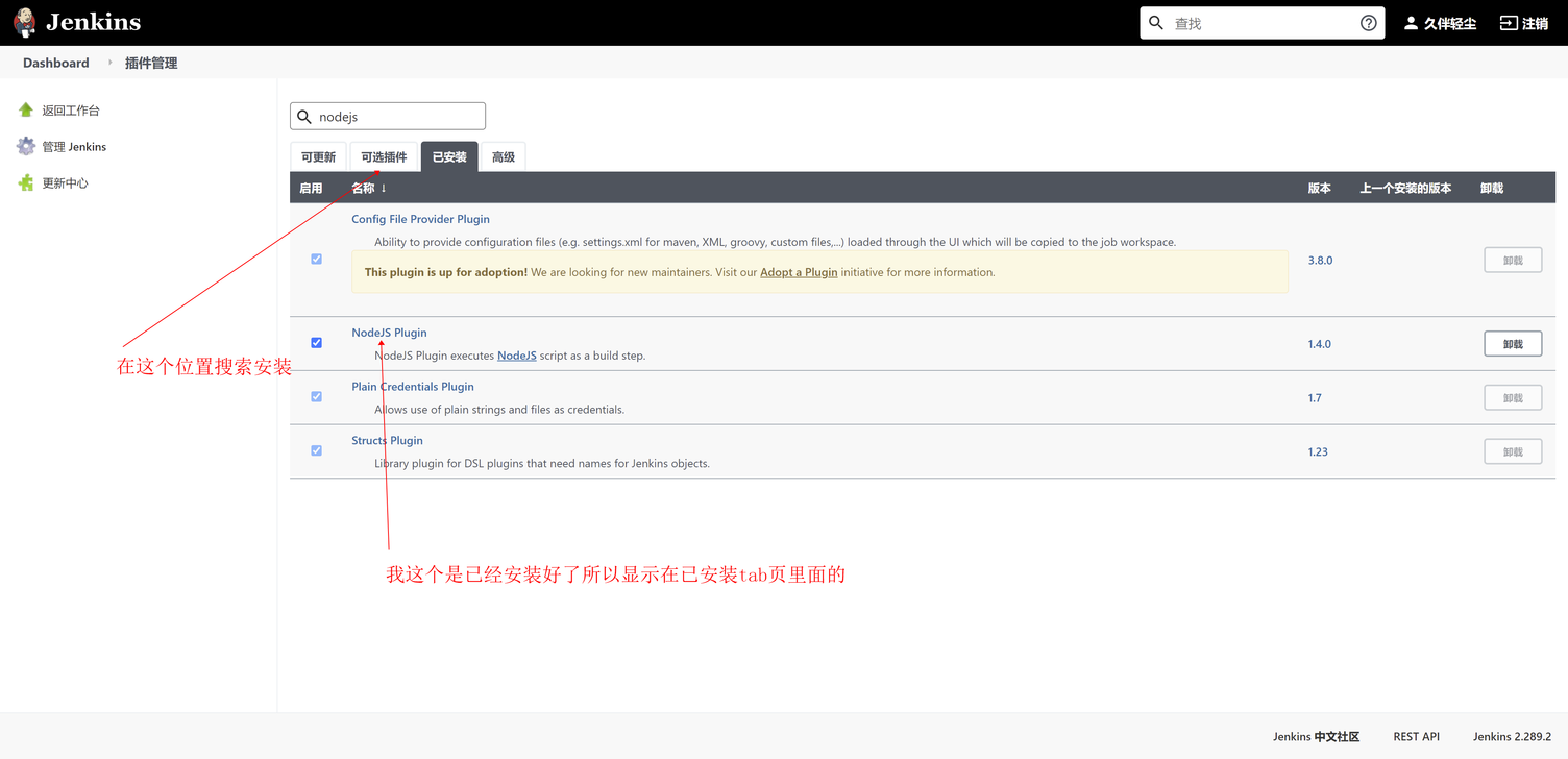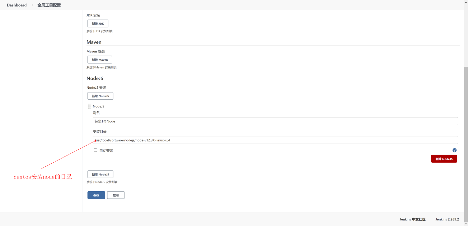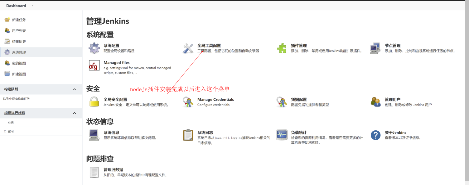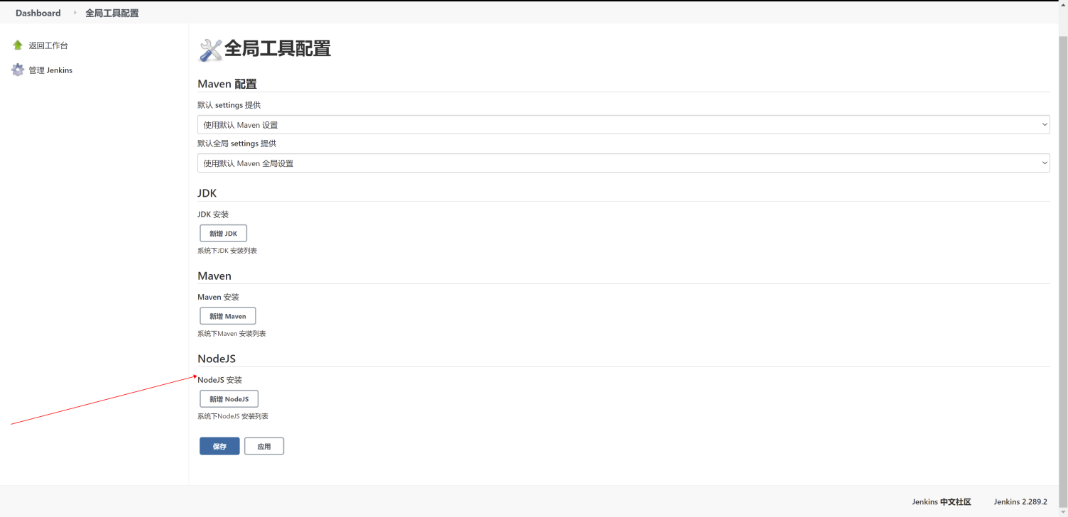 这里出现了Nodejs,说明安装Nodejs插件成功了,这样我们可以在Jenkins中配置Node环境了